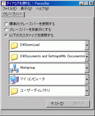 このアイコンが並んでいるところを「プレースバー」といい、本ソフト(PlacesBar)を使用すると、プレースバーのリンク先を“簡単”に好きなフォルダに変更することができます。