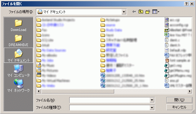 ファイルを「開く」や「名前を付けて保存」を行うと、対応したダイアログボックスが開きますが、Windows 2000やXPでは、左端に「デスクトップ」や「マイドキュメント」などのアイコンが並んでいます。